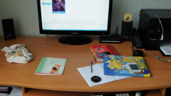 Вчера вечером вытаскивала свой ноут, т.к. компьютер занял наш папа. А на место убрать не убрала.