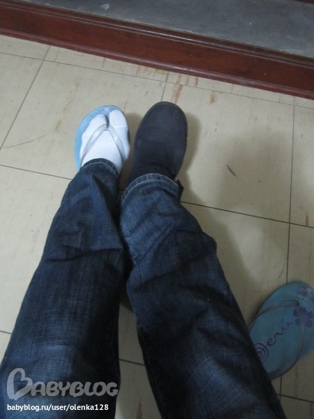 Одежка для моих ножек двух видов - Либо сланцы (на черапашку похожа), либо ботинки (муж пытаеться их каждый раз выкинуть). Ходим по дому в ботинках, босиков в любое время гожа холодно, потому что пол кафельный((