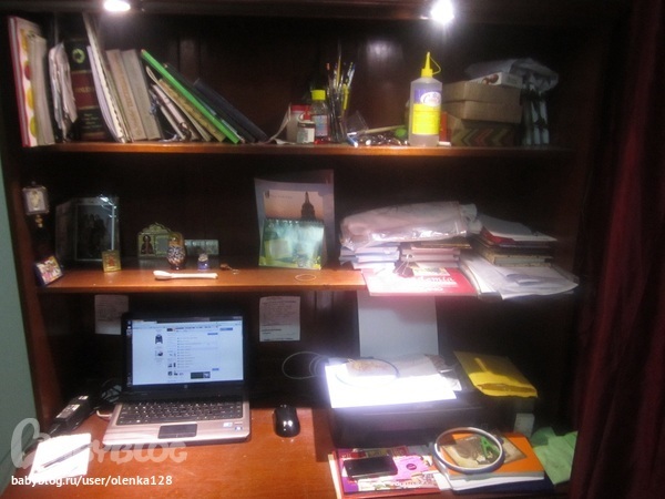 4. рабочее место - письменный стол - сейчас надо сделать блокноты, поэтому емного по-творчески не убрано.