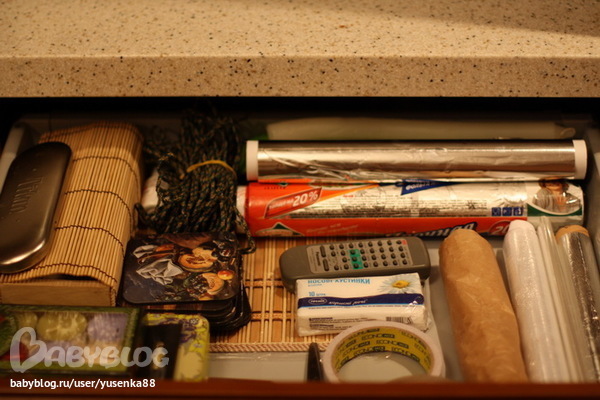 Ящик сейчас полупустой, хотя несколько дней назад я его не могла открыть, столько всего там было накидано)