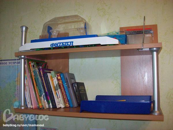В вечерние рутины добавила "пятиминутное спасение детской комнаты". У меня там работа будет всегда, не сомневаюсь....Решила сегодня привести в порядок навесные полки. В итоге получилось только полку сына прибрать, до дочериной полки даже не дошла. Сын пришёл - обалдел, и теперь складывает на эту полочку всё очень аккуратно, видать рука не поднимается чистоту нарушить)Вот наглядный пример: