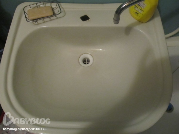 Задание Келли - вымыть раковину в ванной. Сегодня как назло закончились все моющие средства, кроме Пемолюкса, а он не отмывает водный камень (у нас очень жесткая вода и он образуется моментально), но ничего, в субботу все закуплю (из-за болезни сына на прошлой неделе пришлось отложить поход в магазин). В принципе, раковина в ванной у меня всегда чистая (каждодневный полет с ершиком), но более тщательная чистка ей не помешала: