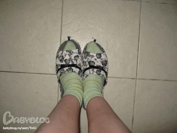 туфли на шнурках- это мне не подходит, т.к. пол дня я на кровати кормлю или успокаиваю мелкую, на руках носить- спина болит. + вальгусная деформация стопы, врач советовала свободную, не сжимающую стопу обувь. зато тапки у меня новые и очень симпатичные по-моему)))