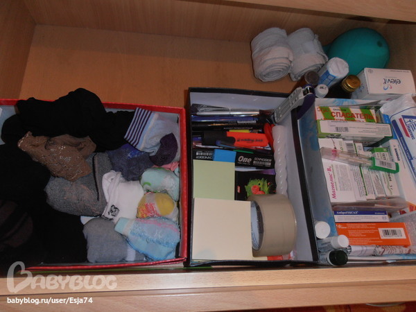 неносимые/нелюбимые носочки утилизировались, канцелярию в порядок, лекарства просмотрелись на срок годности и в мусор полетела добрая кучка, итог: