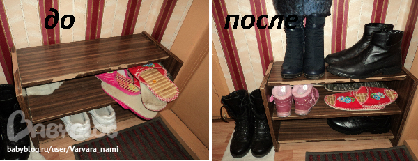 вот 5-минутка! муж помыл в обед всю обувь!!! поэтому чистую обувь я расставляла на чистую полочку!!!