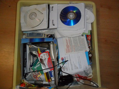 В качестве 15-минутного расхламления у меня шухляда стола.