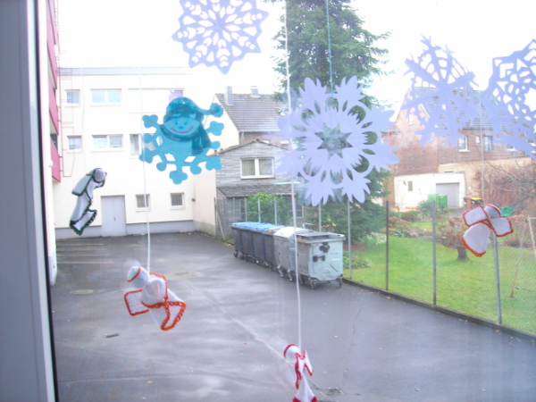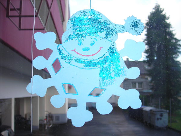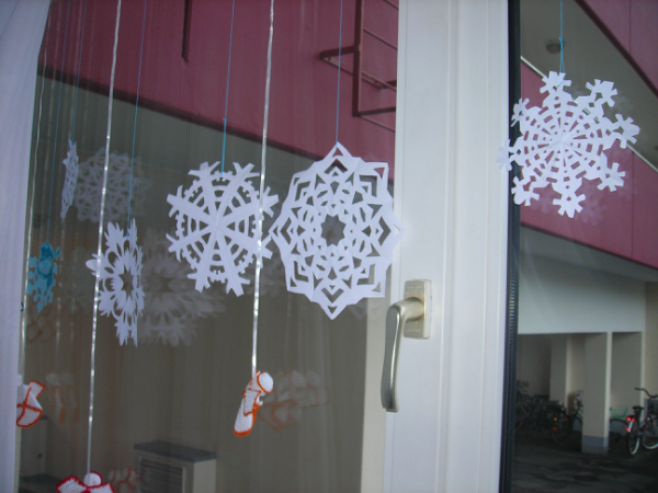 На днях соорудила снежинок, но всяких разных, так же связали ангелочков и один шарик, украсила в детской окошко