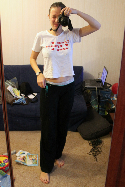 Честно, я думала, что выгляжу дома прилично. Но нет... взгляд со стороны сказал, что штаны нужно срочно заменить. Хоть Юля и сказала, что халаты в топку, мне мой оч нравится. Он новый, скоро должна получить еще несколько домашних платьев. Обувь не ношу... Если найду себе дешевые кеды, обязательно куплю. Буду в них именно убираться. Я просто про такую идею, как обуваться именно на время уборки, услышала впервые. Спасибо.