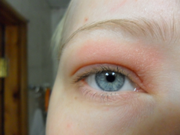 Глаз полностью заплил привет китайцам. Отек и сверху и даже сбоку, у меня теперь просто огромное растояние между переносицей и глазом. Второй глаз немного получше. Вечером вчера выпила таблетку от аллергии, как видите не помогло.