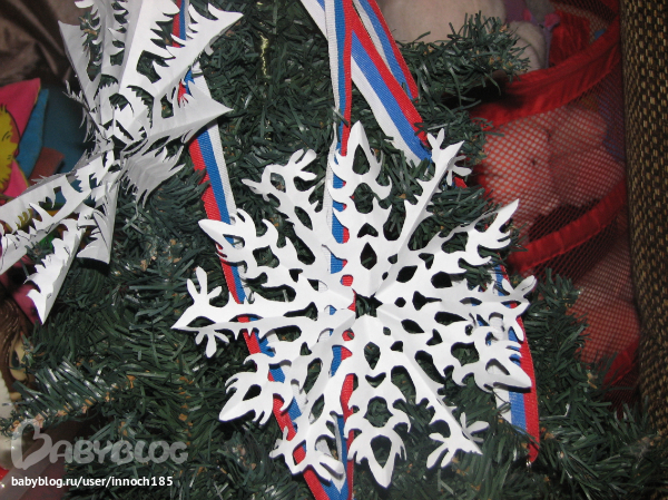 А ещё сегодня со старшей дочкой вырезали снежинки (подсмотрела в НГ-марафоне):