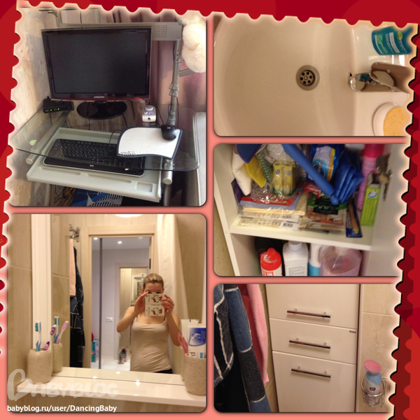 По заданию Келли я разобрала шкафчик в ванной - помыла все полочки, перетерла всю косметику и бытовую химию, которые там хранятся. Выкинула ненужное. Натерла сам шкафчик и хромированные ручки. Еще я помыла раковину и полку над раковиной с зеркалом + все мыльницы и подстаканники... Ну и дополнительно у меня было "рабочее место" то есть компьютерный стол мужа. Ох уж там было и грязно... он там ест, скидывает бумажки и тп в полочку и вообще ))))) Я все выкинула, телефоны с бумажек переписала в записную книжку и натерла стеклянный стол.