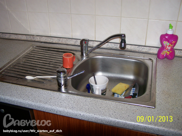 В раковене лежала посуда после завтрака.Были разводы от воды.С боку стояло(сохло)коечто вымотое вчера.Вообщето у нас есть посудомоечная машинка,но посуду в нее убираю только я.Все остальные ставят сверху.И такую посуду которая легко и быстро моется или часто используется,мою руками ,ставлю сбоку и она там сохнет.С полотенцами не дружу,к сожелению не знаю я какие лучше,как часто менять,где их сушить(может ктото может здесь совет дать,если это разрешенно и по правилам??)