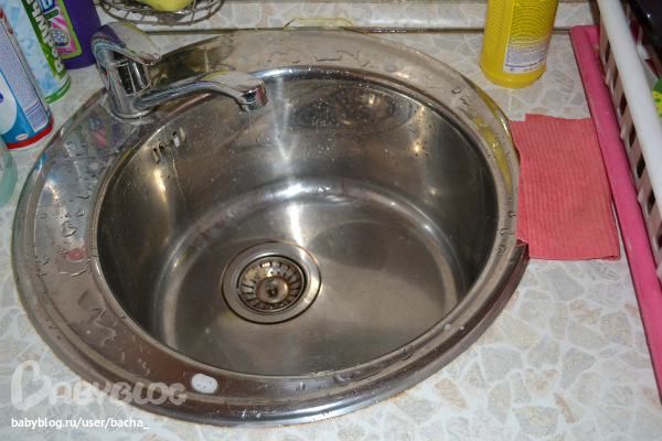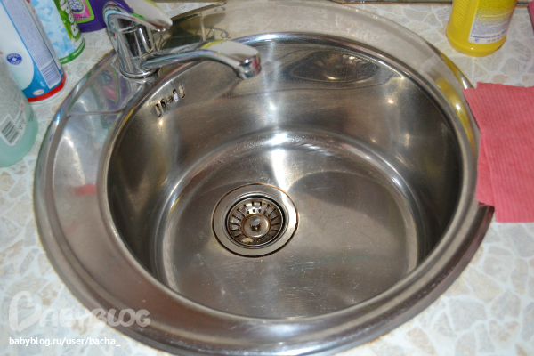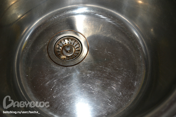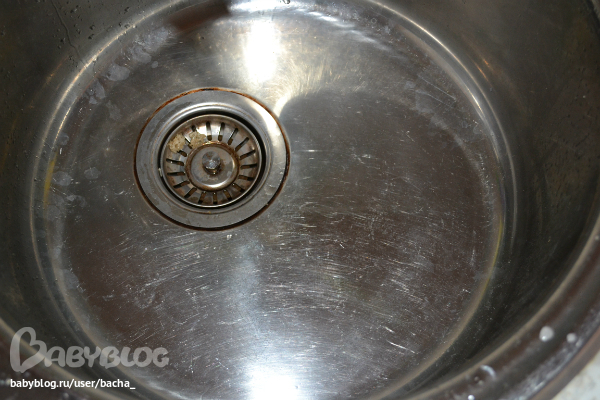 Теперь приступим к основному. Так как с системой я уже знакома, то и раковину держу в читстоте. Решила пару дней ее не мыть, чтоб было с чем сравнивать. Вот, пожалуйста: