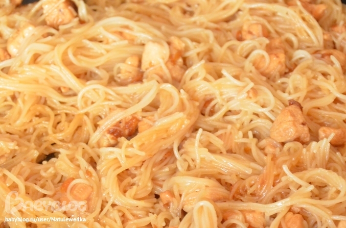 1. Отвариваем лапшу до полуготовности и даем стечь воде.