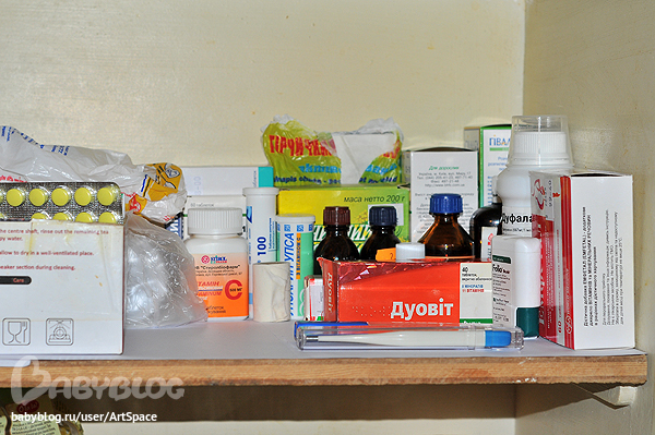 Вечерний. Аптечка - это полочка в закрытом шкафчике на кухне.
