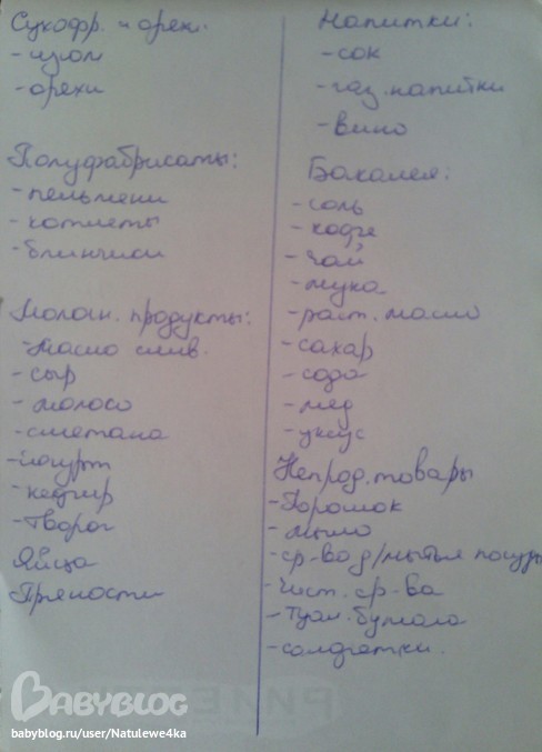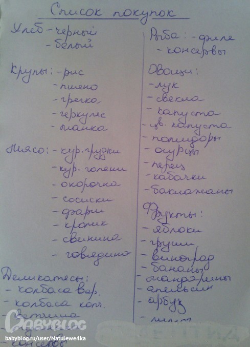 Список продуктов набросала (вернее всего будет корректироваться, ведь что-то я все-таки забыла написать?!):