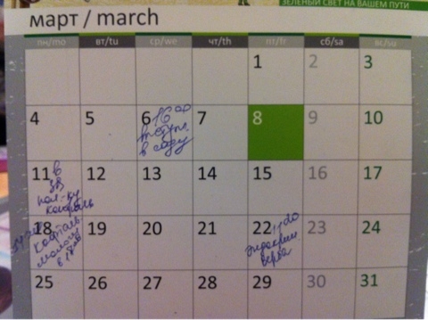 Мой календарь на работе в таком виде как на фото появился очень давно, дома завела с НГ, висит на стене и все видят и могут вписывать события, но пока кроме меня это ни кто не делает.