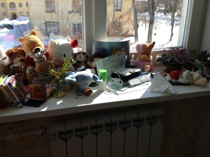 Про раковину скажу так:пока я лежала с температурой 38 и едва-едва доползала до кухни, то сияющая раковина реально поднимала настроение!!! напоминая, что скора снова все будет хорошо и я вновь буду летать!:) Ну а хот-споты заросли лекарствами и вещами...