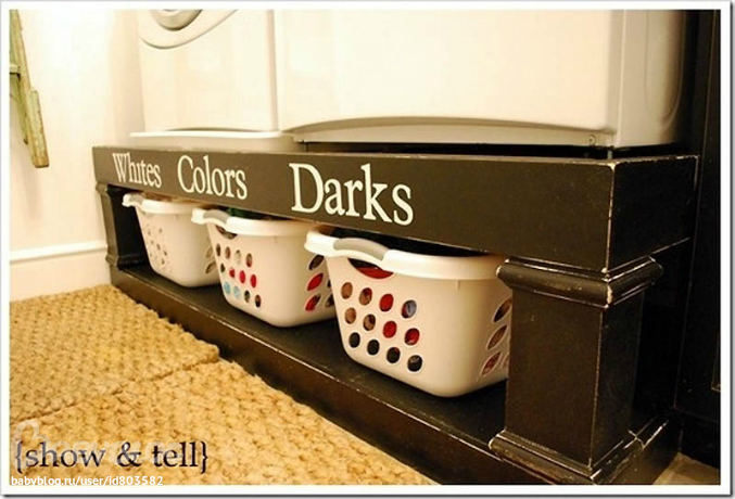 Полочка с корзинами для белья под стиральной и сушильной машинами!