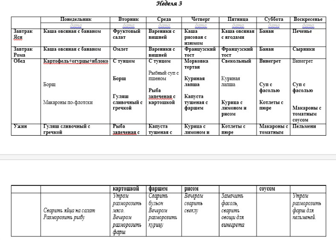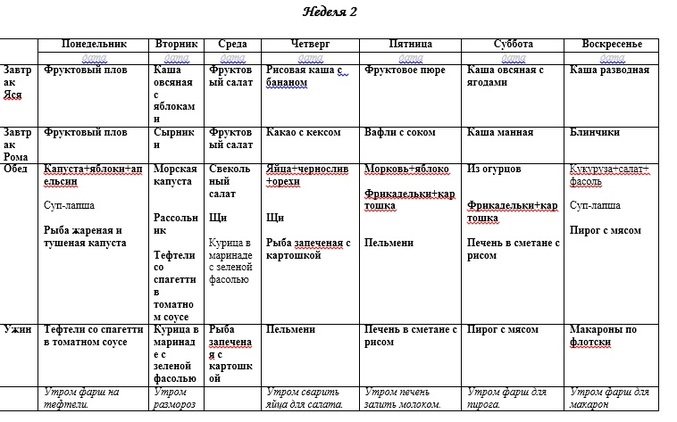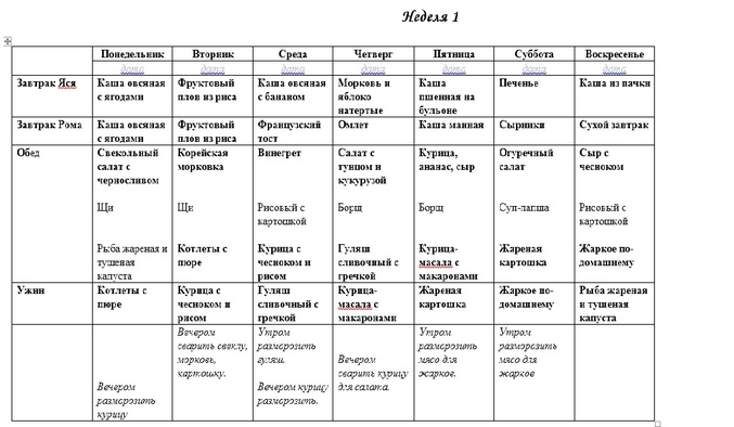 Делюсь опытом и идеямиЗаморочилась я с составлением кругового меню на 5 недель. Три недели написала, еще 2 никак не могу продумать-придумать.