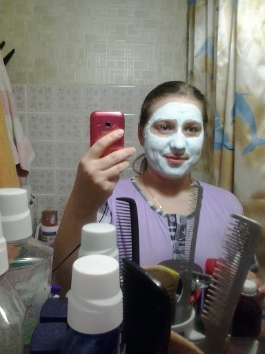 Утро бодренько началось-умылась ,нанесла маску на личико ,чем испугала дочку,потом прическа и макияж.