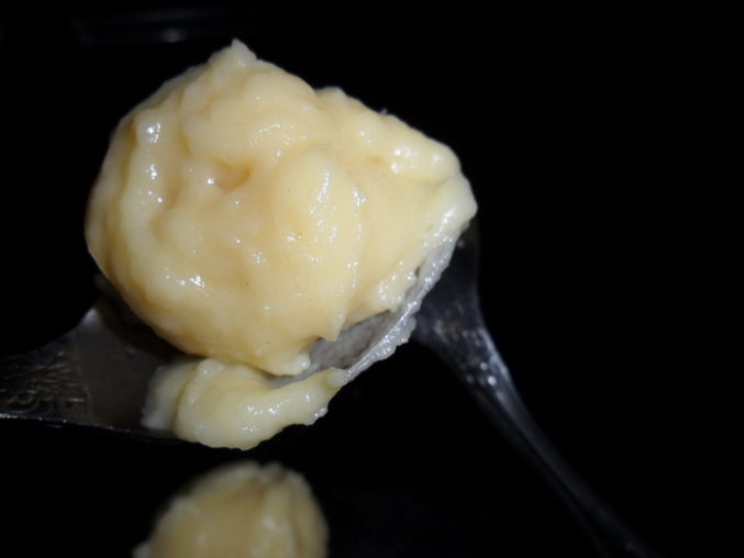 Мешаем до тех пор пока вся мука не растворится, делается это очень легко, комочков у меня не получалось никогда. Само тесто очень интиресное, лекго отстает от стенок каструли, выглядит вот так.