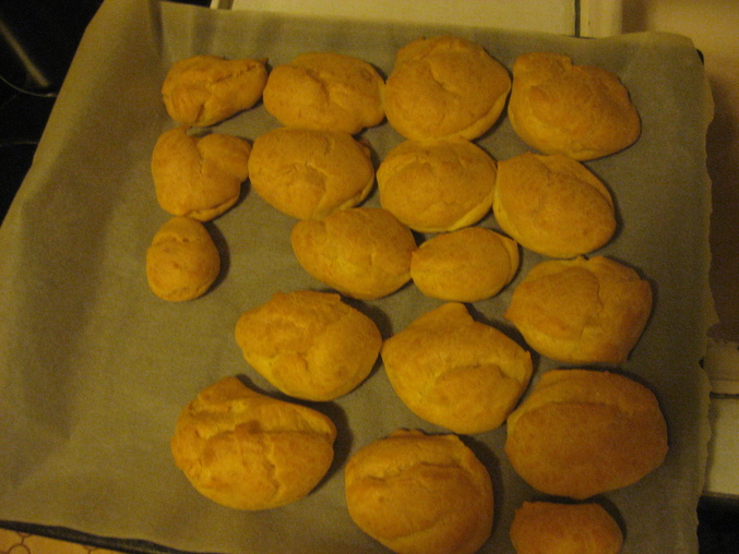 Ставим наши эклеры в разогретую духовку при температуре 220 градусов. Пекутся они в течении 20-25 минут (зависит от духовки). Духовку лишний раз не заглядывать, могут упасть. Мои немного упали