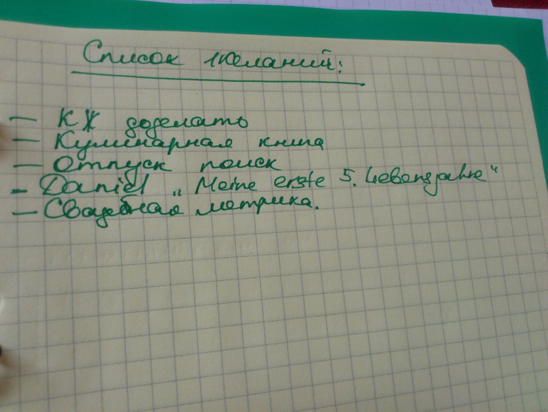 5. Список желаний. Тут все сложно, много того что должна, но не очень хочется, того что хочу, но со временем когда дети подрастут и еще много всего... Списки отложенных дел, хотелок по рукоделию и прочего в КЖ. Список желаний в близжайший месяц: