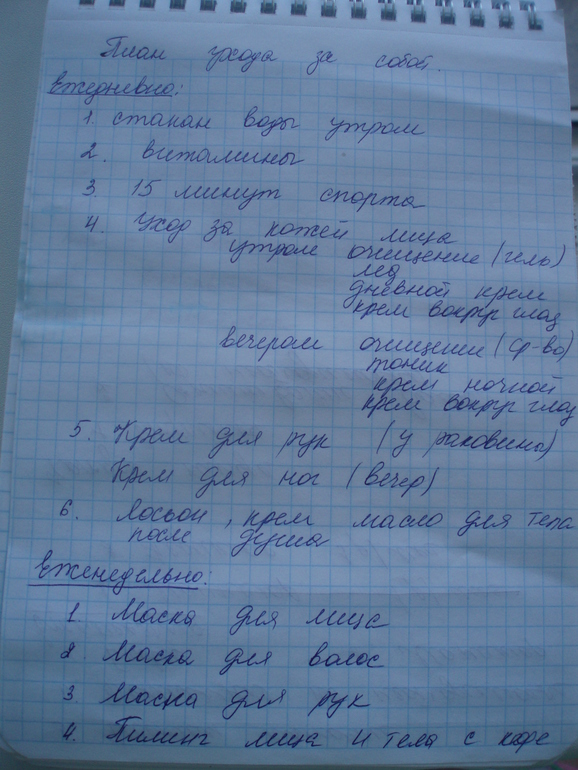 Ну а по поводу ухода за собой отчитаюсь просто фото со списком.