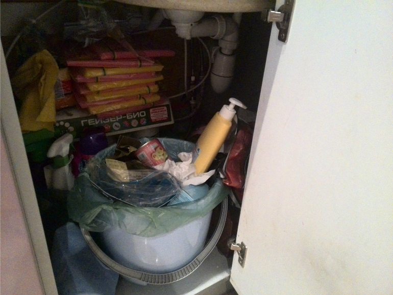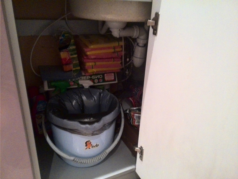 2) Ведро у меня довольное чистое, т.к. оно по совместительству еще и ведро для мытья пола, а вот место, где оно стоит, просто ужас:
