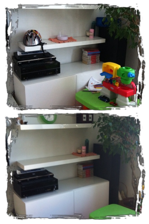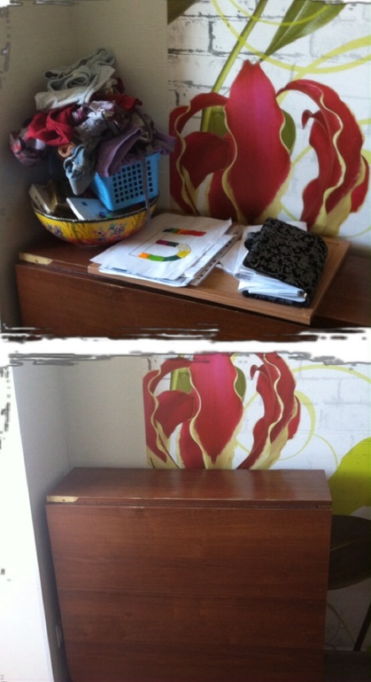 ХС :сейчас выложу фото с прошлого взлета и отмечу что часть моих ХС искоренилась либо от усилий приложенных,либо от перемены самого назначения места захламления(поставила горшок с цветами/стопку книг,т.е.заняла пустоту,чтоб не повадно было.есть над чем работать.самый большой ХС это детская.там до порядка еще далеко,но детям скидка.на то они и игрушки,чтоб в них играть.