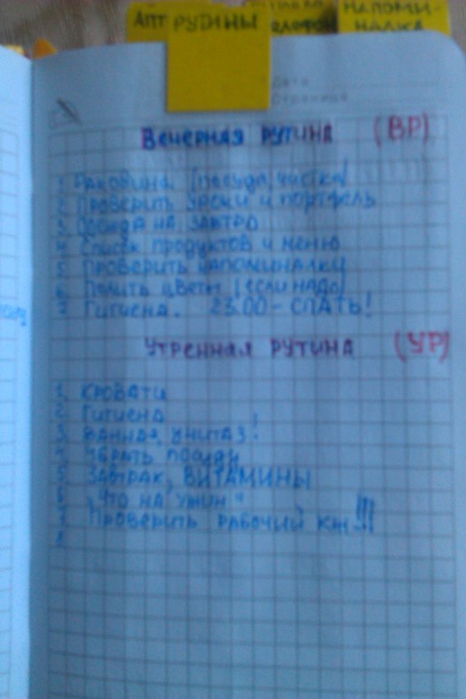 4. А теперь собственно рутины (утренняя,вечерняя и дневная). Изучила книгу и решила заполнить КЖ ими еще в понедельник..не ругайте меня ,пожалуйста, за опережение..