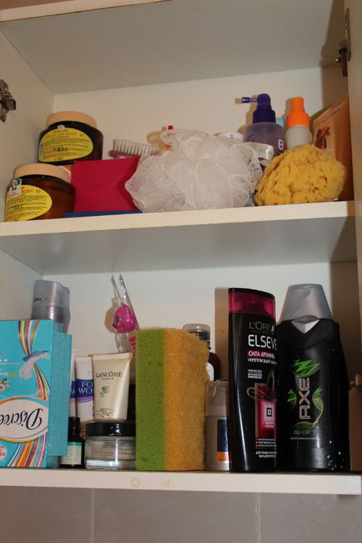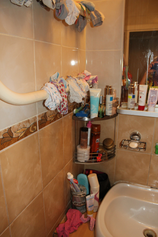 Раковина блестит, пришла переоделась, убрала в ванной - шкафчики, за исключением того, что под раковиной и под ванной.