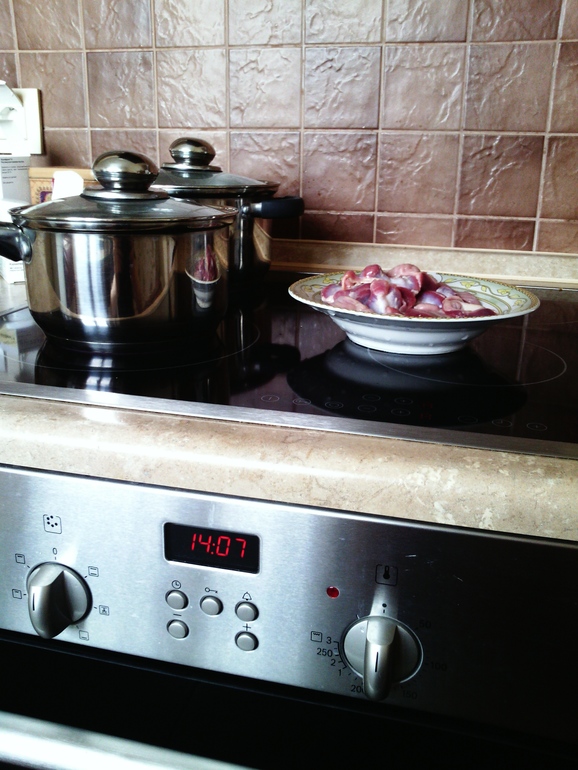 Сидеть все еще не охото, посмотрим, что у нас там с куриными желудочками! Сегодня у нас по "БНП меню" день курицы :) Вроде бы разморозились, надо бы почистить...Поскольку готовим на один день, то времени это заняло совсем немного и да простят меня активистки и мамы с детьми, пошла я опять бездельничать :) Аж стыдно :)))