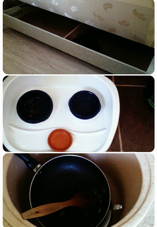 Любезно поднятый диван, дабы я его не поднимала с пузом, некормленый кот, который ходит хвостиком за мужем все утро и горка посуды после завтрака :)