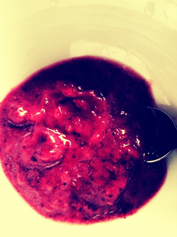 В четыре часа у нас будет полдник, по "БНП меню" это фрукты, а поскольку остались ягодки от вчерашнего компота, сделаем себе фруктовую пюрешку...ммммм...и как я могла раньше выкидывать эти самые ягоды? :)