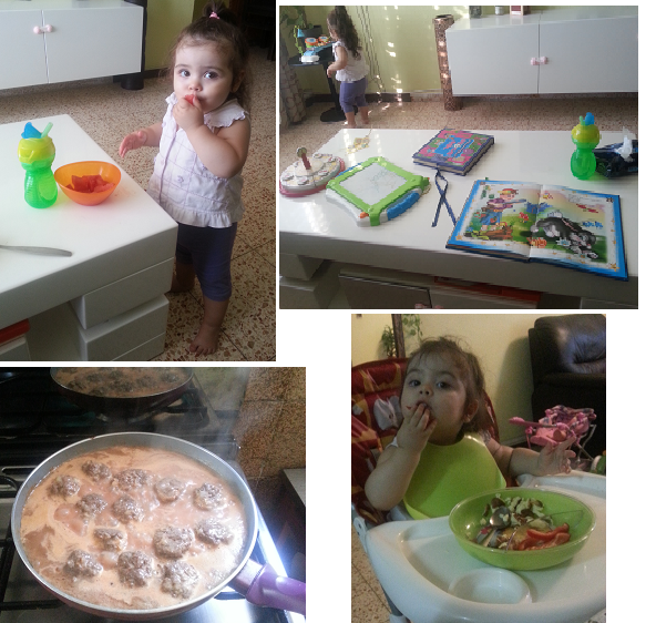 16:30 иду готовить ужин , мое чудо продолжает играться. Даю ей немного перекусить арбузиком под мультики