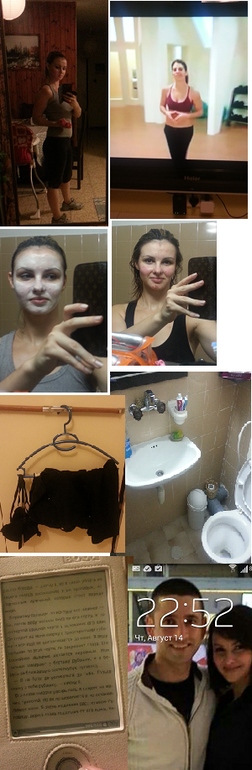 в 21:30 идем купаться, по дороге смотрю что у меня по плану уход за собой (сегодня было уход за лицом) Сняла макияж, поскрабила лицо и шею. нанесла маску, приняла душ, смыла маску, протерла лицо и шею тоником, нанесла востонавливающий ночной крем для лица. крем для рук.