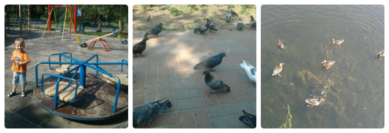 гуляли 2 часа кормили уток, голубей и катались на качелях
