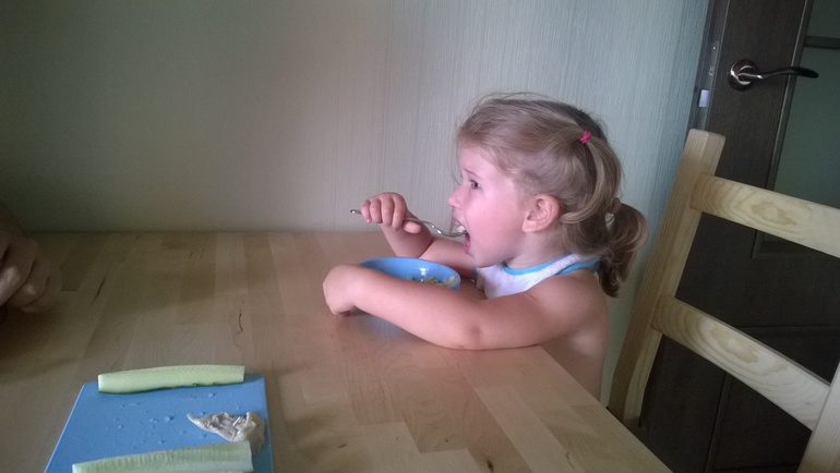 14:20 Зову всех обедать, а папа наш опять просит не фотографировать его :) Наверное стесняется :)