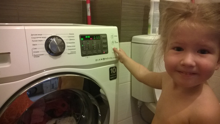11:20 Идем с дочкой стирать:) Помощница моя. Вот бы ее уговорить причесаться еще