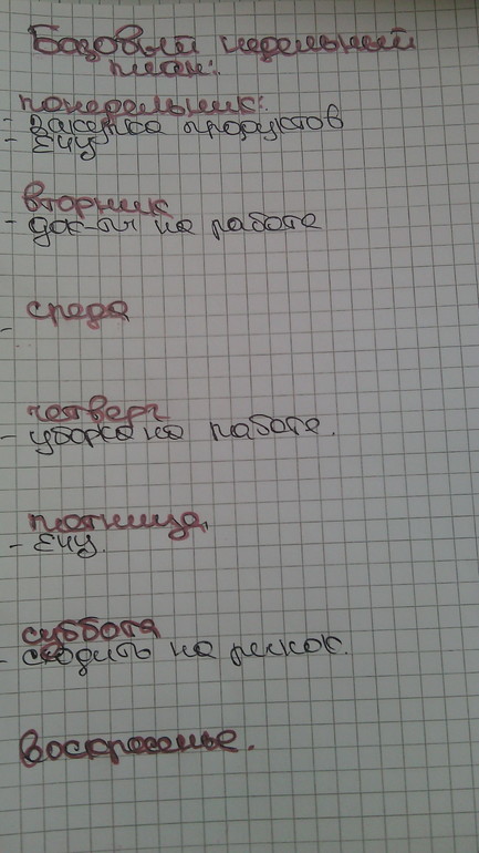 С базовым недельным планом пока не определилась. Занесла в КЖ, буду заполнять по опыту
