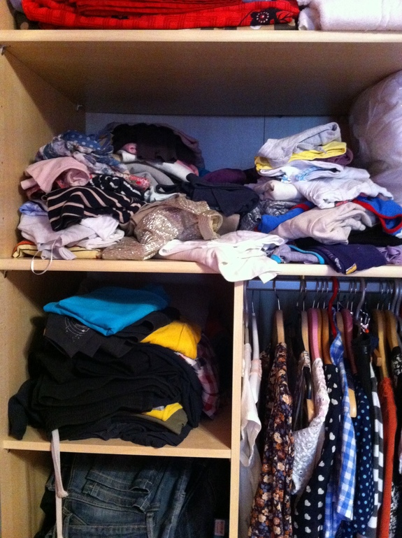 Утренние рутинки выполнили вместе с дочей, она активно мне помогает) В рамках расхламления я навела порядок в своем шкафу, вот такой он был до (ужас ужас!)
