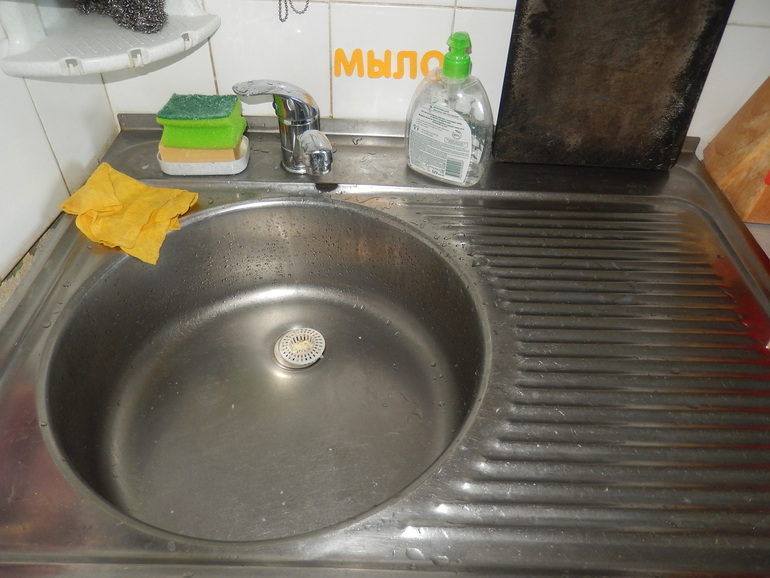 Отчитываемся по заданиямЗдравствуйте дорогие флаюшки! Вот и я теперь с вам. Волнуюсь, как перед первым свиданием! :) Про кухонную раковину - гениальная идея. Казалось бы это всего лишь раковина, но для хозяйки это как для офисного работника - рабочий стол, рабочее место так сказать. Я вот, например, не могу начать готовить, пока раковина не помыта - бзик такой. И после мытья посуды всегда мою, т.к. остается жирный налёт. Поэтому кухонная раковина в относительно хорошем состоянии. Кстати, ей уже 25 лет. Фото ДО: