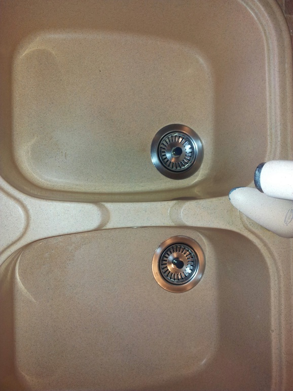Итак,раковину на кухне как следует вымыла с чистящим средством.Фото ДО: