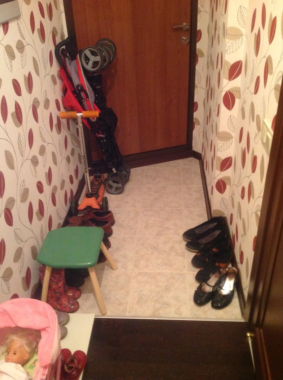 Ещё, я заменила этот страшный строительный стул, на детский деревянный стульчик, чтобы дочка на него садилась обуваться)