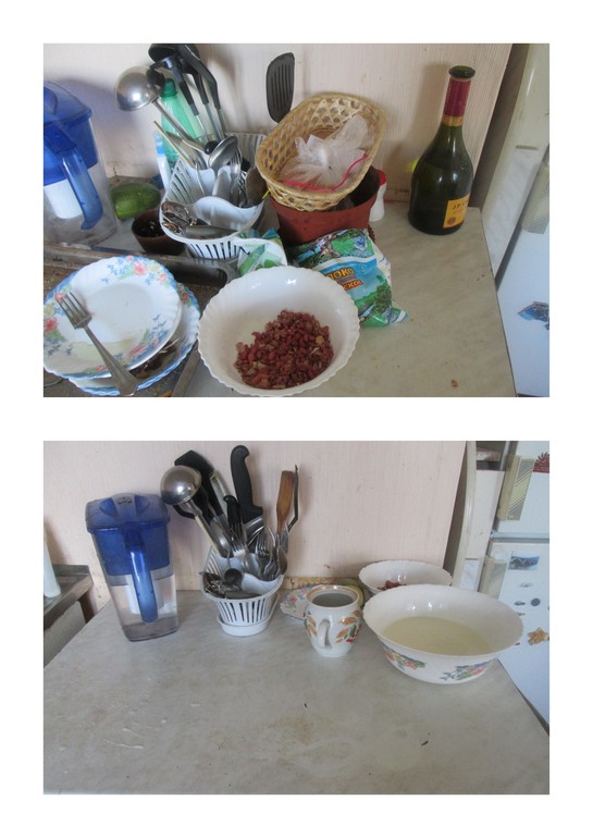 Затем стол рядом с раковиной - он больше чем 2 минуты - так как мыла посуду еще. Оставила продукты дл обеда