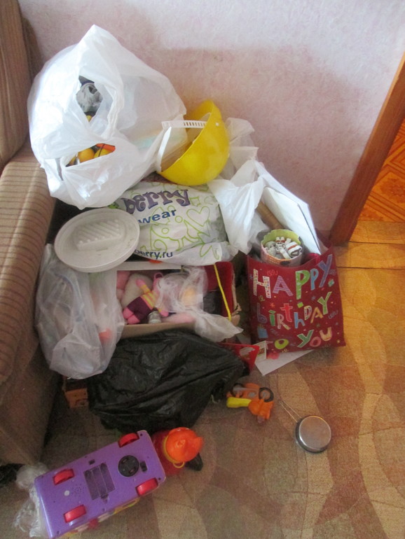 Итак ХС. Подумав - я все таки пришла к выводу, что вся моя квартира один сплошной хот стоп. Все поверхности на всех уровнях, то есть от пола до верха антресолей. Разного уровня загрязненности. Вот самый главный и страшный - сформировался полторы недели назад когда мы с малышом бесчинствовали и собирались выбрасывать игрушки. С ужасом хожу мимо: