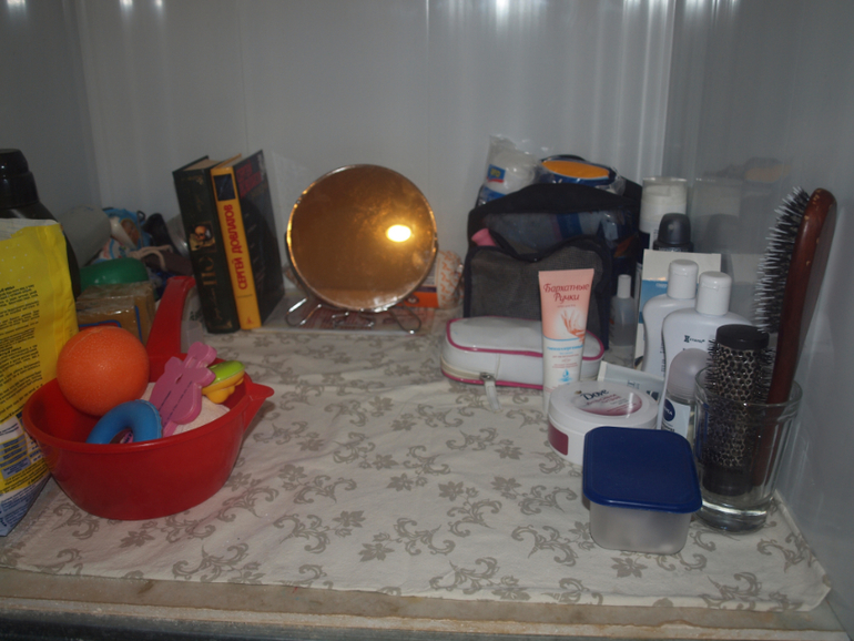 ну и полка в ванной, здесь запланирован шкаф, но пока денег нет доделать, вот полочка, уже начала наводить на ней порядок, теперь скорее поддерживаю