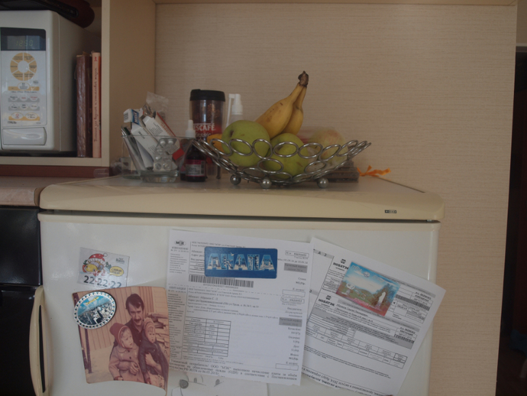 на холодильнике, фрукты правда так и не успела помыть и не все пузырьки лишние убрала, но все впереди